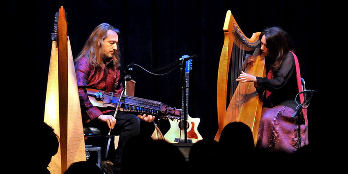 Lisa Lynne & Aryeh Frankfurter are a multi-instrumentalist duo with Celtic Harps, Swedish Nyckelharpa, Ukrainian Bandura, Bouzouki, Cittern and more. They hail from Oregon and tour extensively, both having successful recording and performing careers built from years of street performing and a background as rock musicians. They have performed with some of the biggest names in folk and acoustic music and have sold well over a million albums combined. Audiences are spellbound and enchanted with their unique show of breathtaking music both Traditional and original, with wondrous stories and humor entwined.